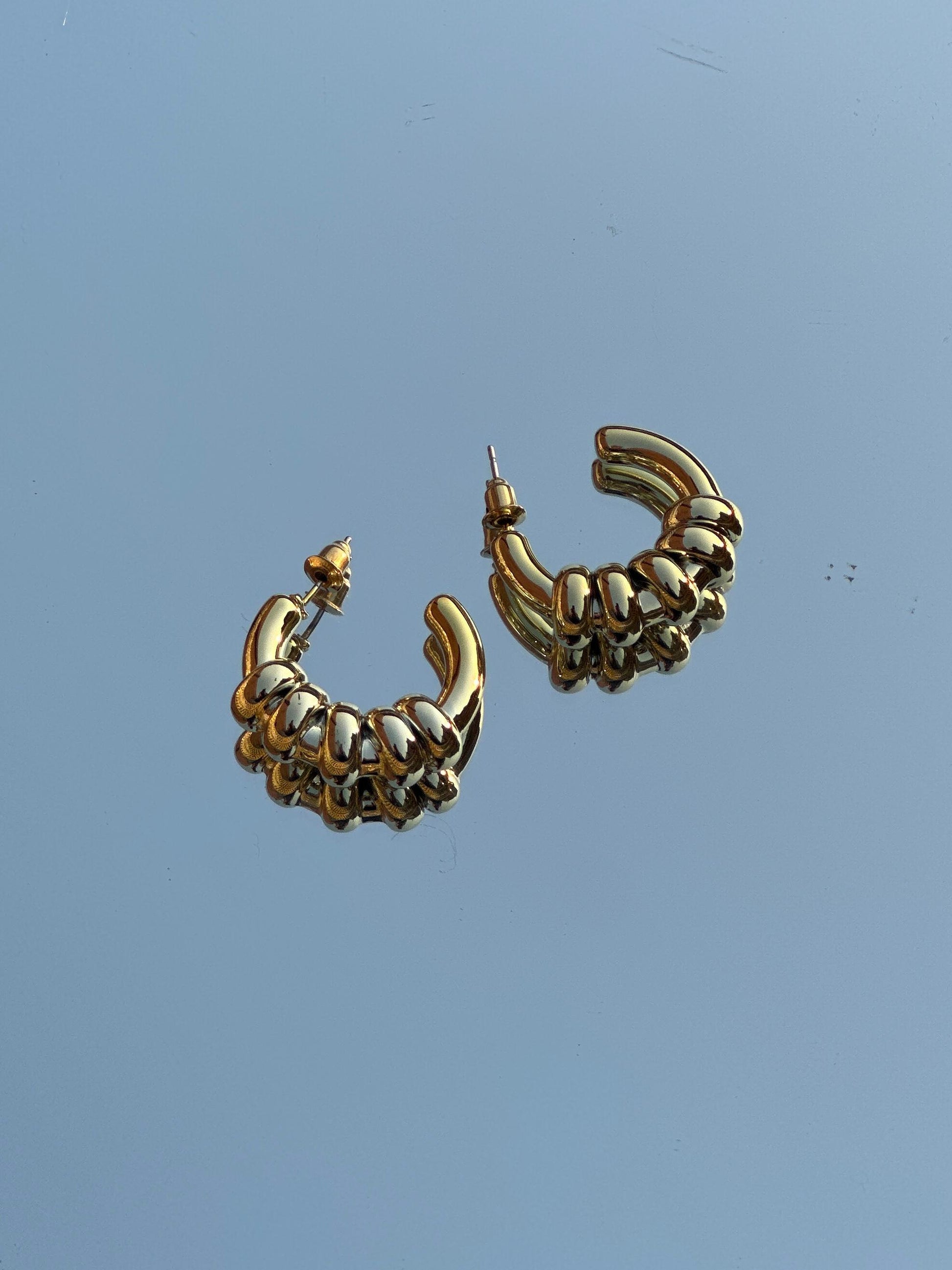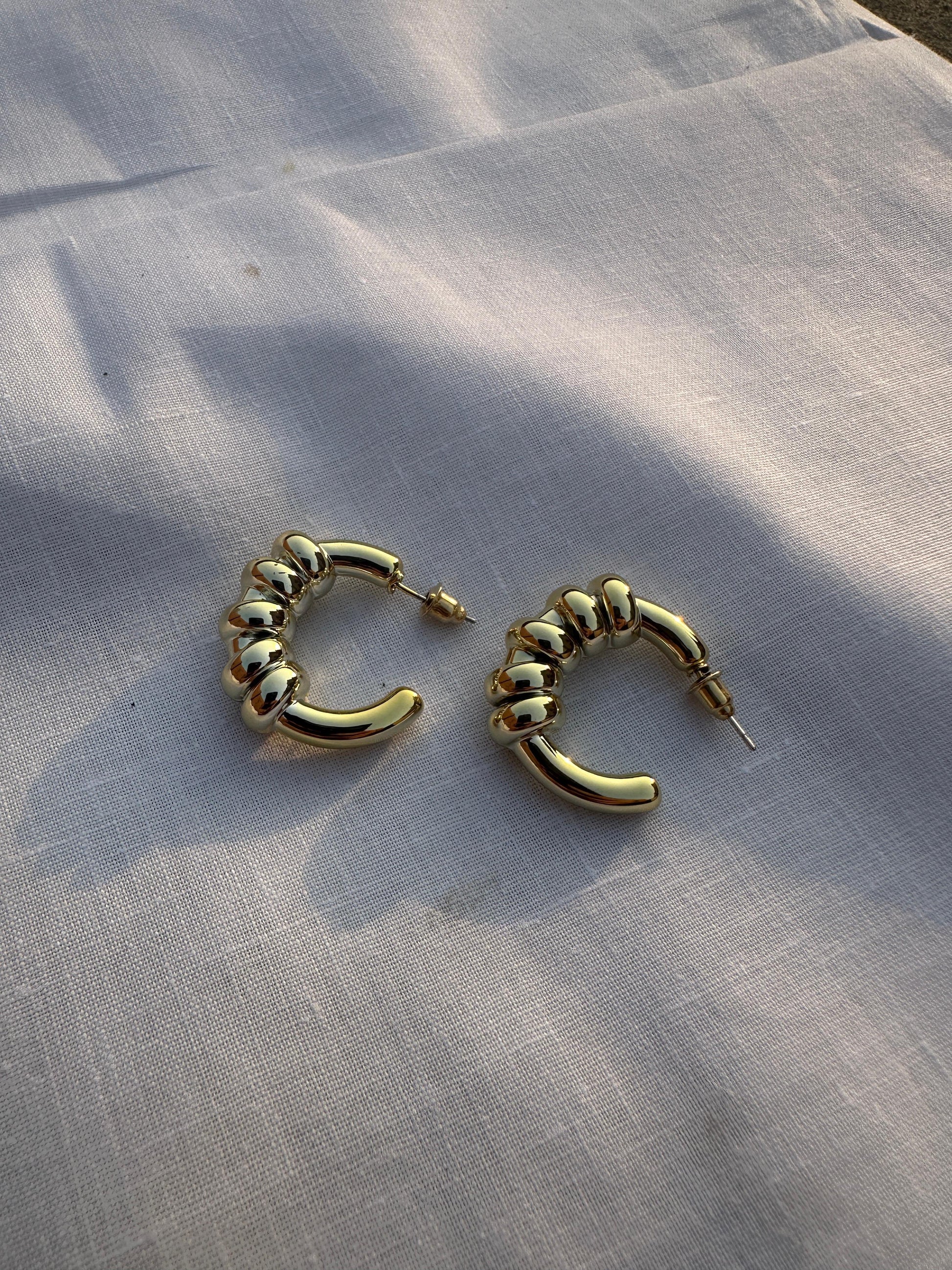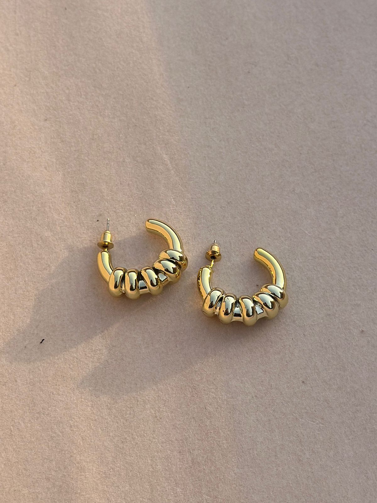 Bold, sculpted, and effortlessly chic — these hoops feature a twisted ripple design that adds dimension and glamour to your everyday gold essentials.