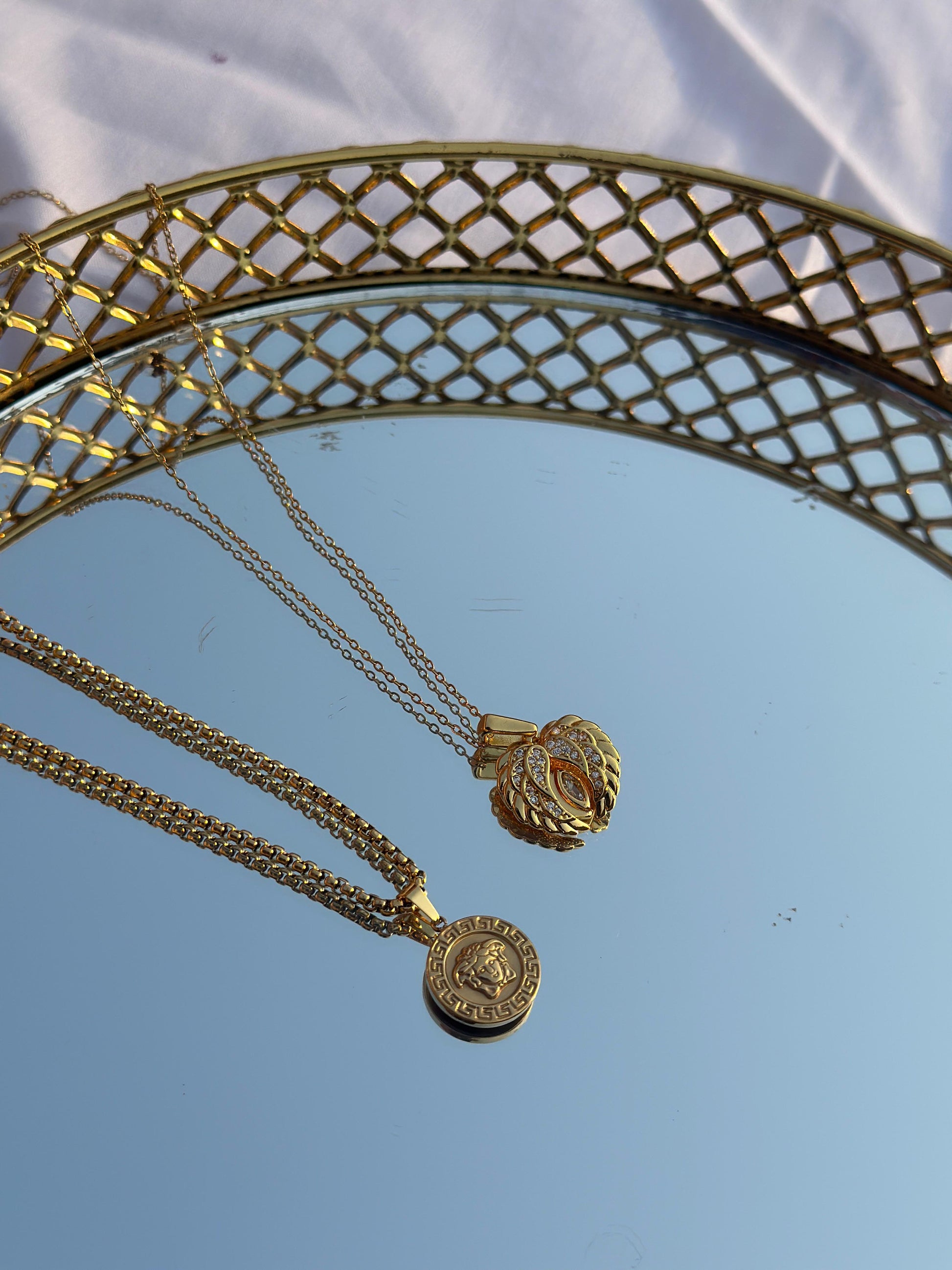 Bold and iconic, this piece features the powerful Medusa head — a true emblem of fierce femininity and timeless glamour